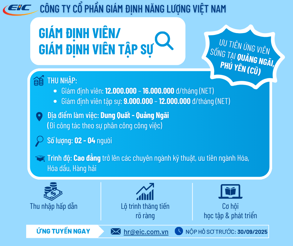 Tuyển Dụng Giám định viên/ Giám định viên tập sự tại Dung Quất – Quảng Ngãi